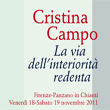 Il convegno promosso dalla Comunità di San Leolino insieme al Servizio nazionale per il progetto culturale - in collaborazione con il Centro internazionale di Studi Rosminiani di Stresa - tenta così di analizzare e testimoniare la vicenda umana e spirituale di Cristina Campo in alcuni aspetti della sua avventura letteraria: il suo amore per l’Oriente cristiano, il dramma vissuto dopo la riforma liturgica, la sua profonda e costante attenzione al mistero di Dio, la sua poesia, i suoi carteggi, l’amore per la musica, perfino il confronto con altre avventure spirituali come quella di Louis Massignon.