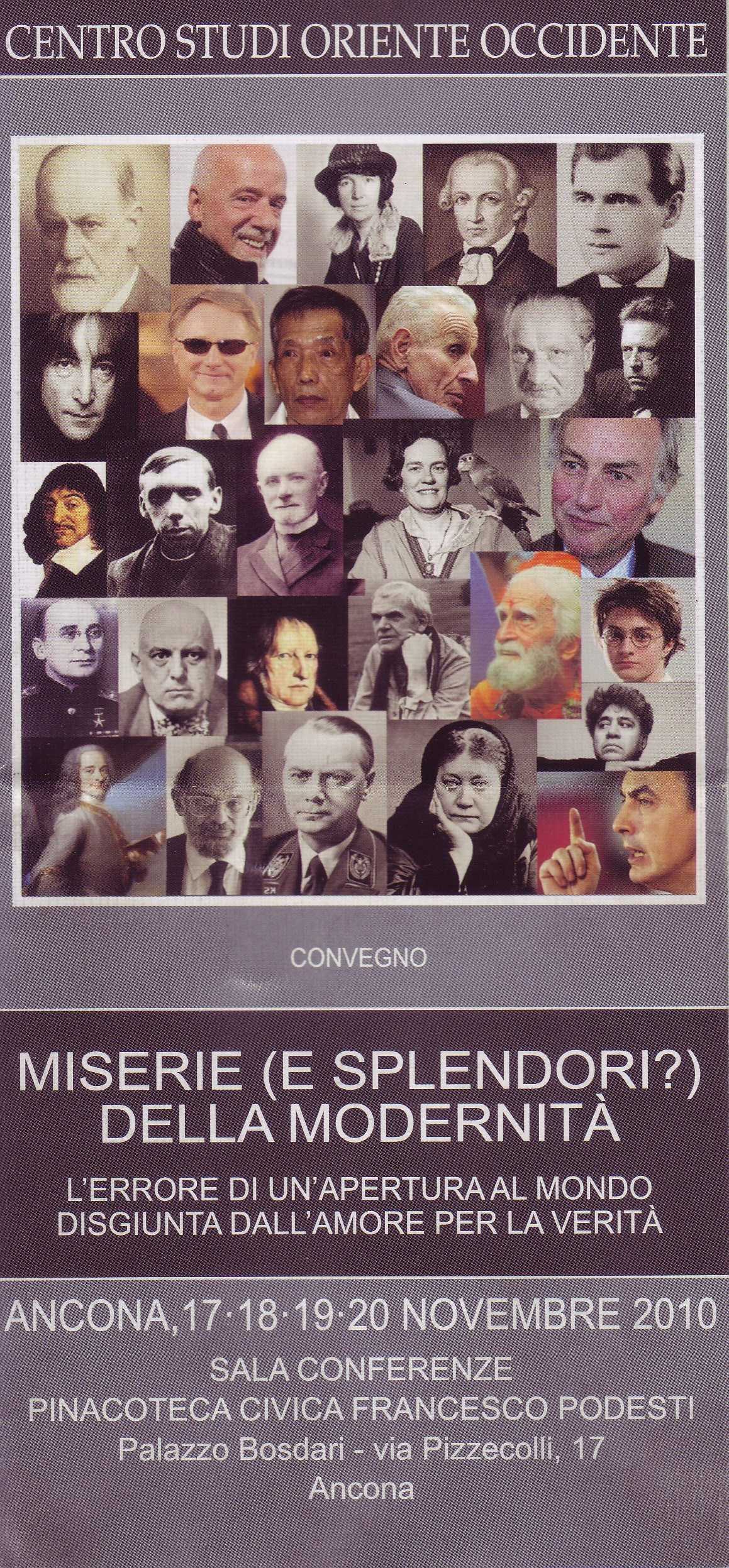 E' la domanda cui cercherà di rispondere il convegno 'Miserie (e splendori?) della modernità - L’errore di un'apertura al mondo disgiunta dall'amore per la Verità', in programma dal 17 al 20 novembre nella Sala conferenze della Pinacoteca Civica Podesti di Ancona.