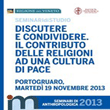 "Discutere e condividere. Il contributo delle religioni ad una cultura di pace", con un percorso di approfondimento sulle radici antropologiche della conflittualità interpersonale e tra gruppi identitari e culturali diversi.